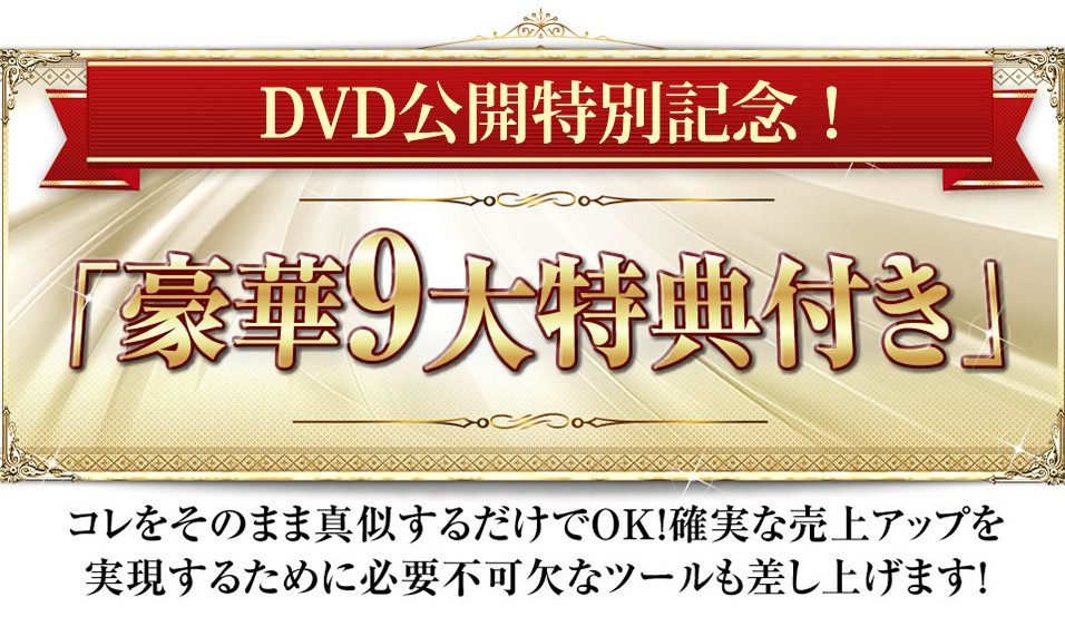 特別価格でこのDVD教材が手に入るばかりか、誰でもすぐに使える9つのツールまで手に入れることができます。