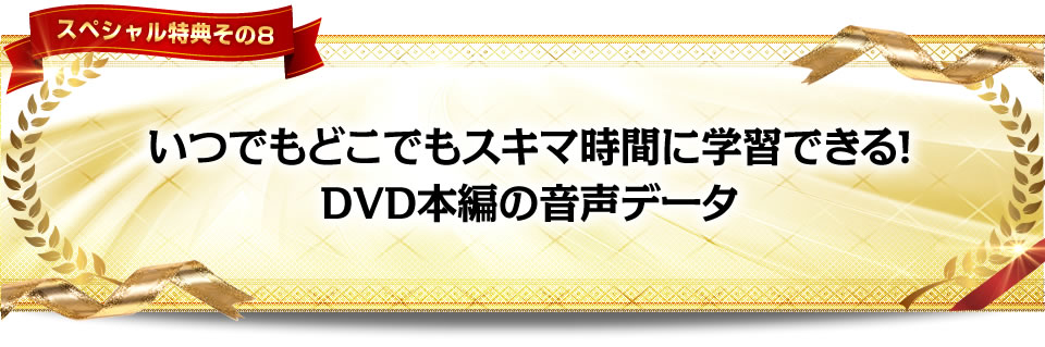 DVD本編の内容を音声だけに抽出したことにより、観て、聴いて、学べるという、最高の学習環境が整いました。