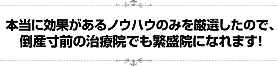 このノウハウをそのまま実践すれば、あなたの院は確実に売上アップすることができます。
